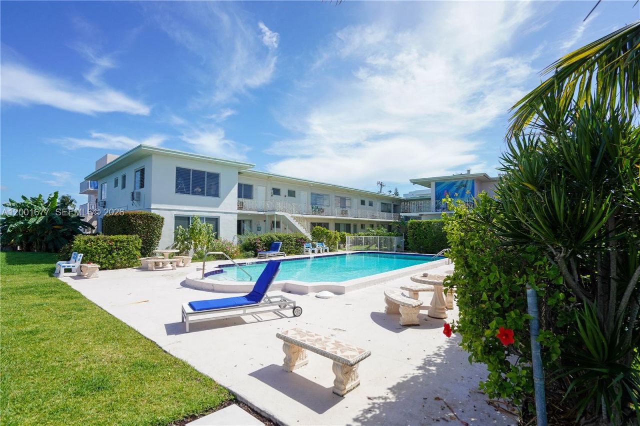 Super cute 1-bedroom in a charming garden-style waterfront building right on the Intracoastal in North Beach. This 663 SF unit is in great condition, with tile floors throughout and a bright, comfortable feel. The kitchen has been updated and includes a gas stove, dishwasher, and stainless steel fridge, plus a back door off the kitchen.The building has that classic Art Deco charm, with a pool and a brand-new deck overlooking wide bay views?perfect spot to relax and enjoy the water.Great option to live in or invest. Easy walk to restaurants, markets, and everything you need nearby. Definitely worth seeing in person!