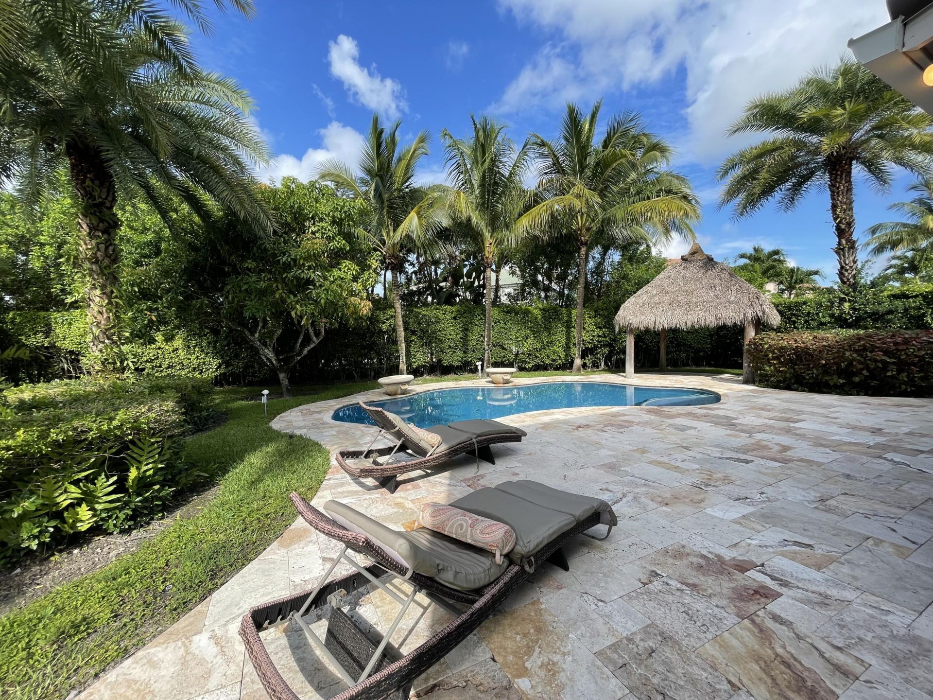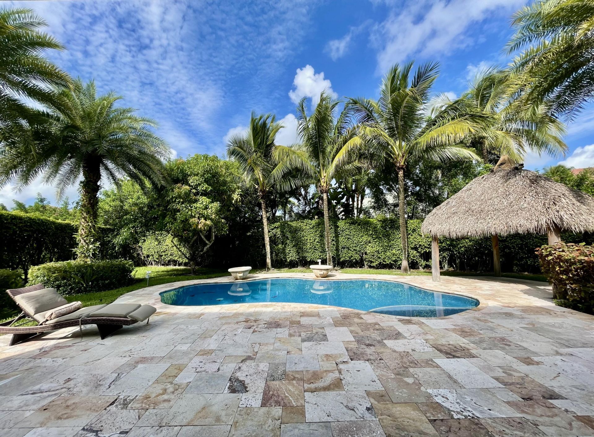 Experience elevated living in this stunning 4-bedroom + den, 2.5-bath home designed for comfort and entertaining. Enjoy breathtaking pool views from your private backyard oasis , complete with a marble deck and charming tiki hut-perfect for hosting or relaxing in style. Step inside to soaring cathedral ceilings, elegant French doors, and a bright, open eat-in kitchen filled with natural light. Every space is thoughtfully designed to feel both inviting and sophisticated. Located near top-rated schools with easy access to I-75, this home offers the perfect blend of luxury, convenience, and lifestyle. Don't miss the opportunity to make it yours.